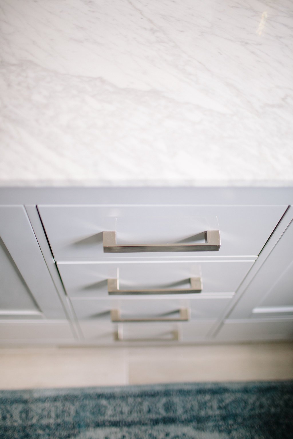 When it comes to fixtures and finishes I like to take a few risks in designing a space and choosing brass fixtures would be considered a design risk in many of your books I’m sure. I love all things brass in home design but it’s not your Grandma’s shiny polished brass that I’m talking about. I’m drawn to the more muted, aged brass look like the champagne bronze that I chose for some of our fixtures. It’s a subtle finish that still makes a statement and is a change up from the traditional chrome, brushed nickel or oil-rubbed bronze.